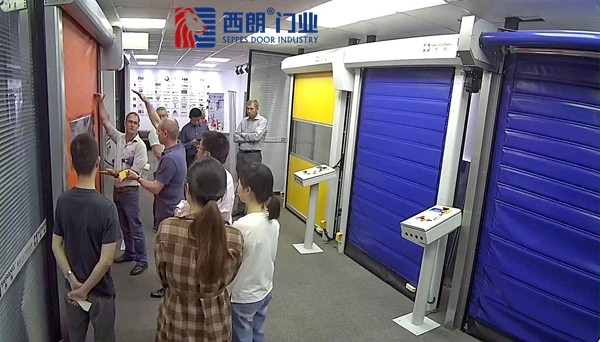 外资工厂客户首先参观了抖音黄色下载APP门业展厅,接待人员重点介绍了快速卷帘门、冷库保温快速卷帘门、涡轮硬质快速卷帘门、防护型快速卷帘门、抗风快速堆积门、变频工业提升门、工业门封、装卸货平台等工业门及物流设备产品,并就产品的功能特点、实际使用、技术参数等一一进行交流。