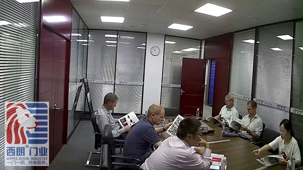 上图为:外资工厂客户在抖音黄色下载APP门业会议室技术交流